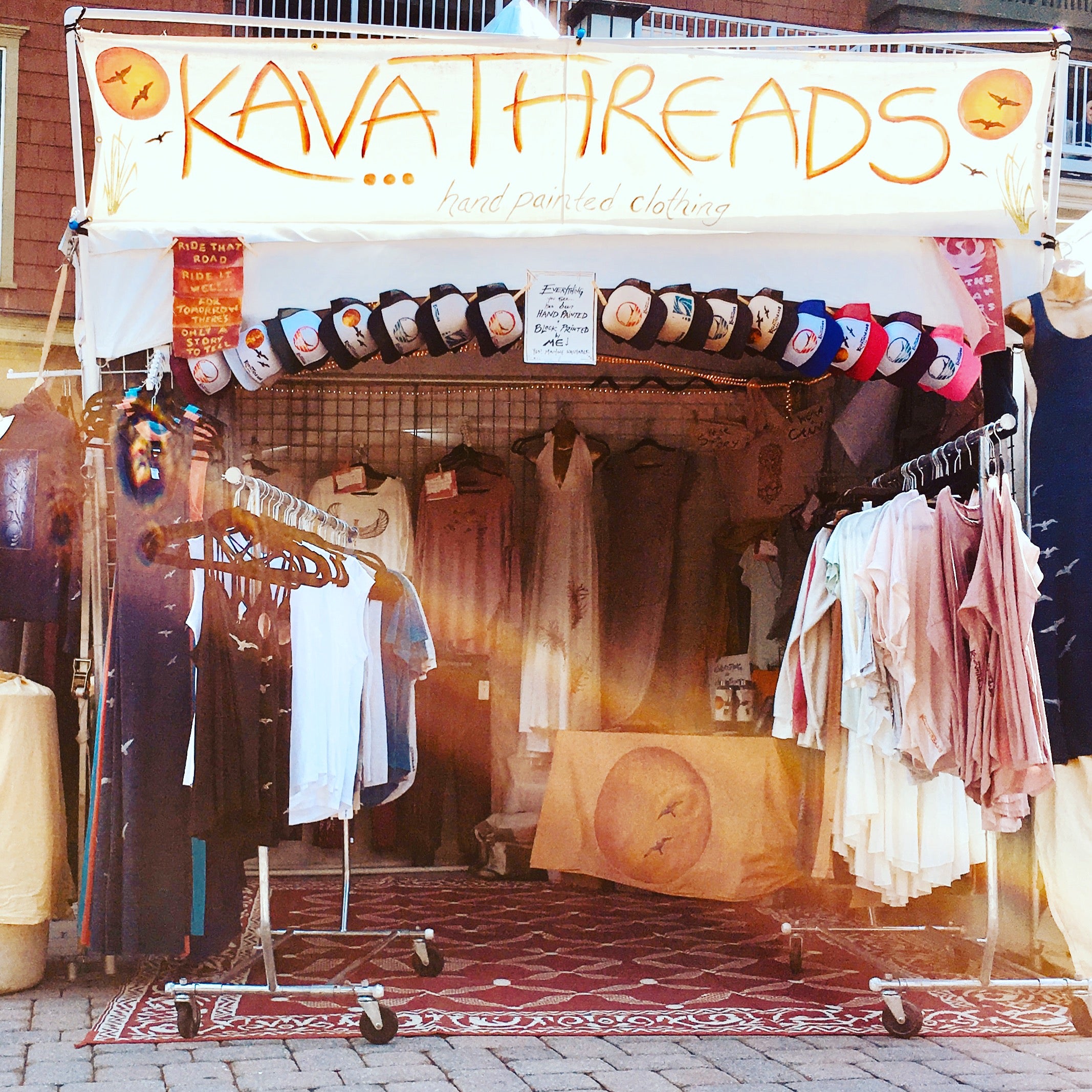 Each piece in the KavaThreads collection has been hand painted and block printed by yours truly - an offering from my heart to yours.